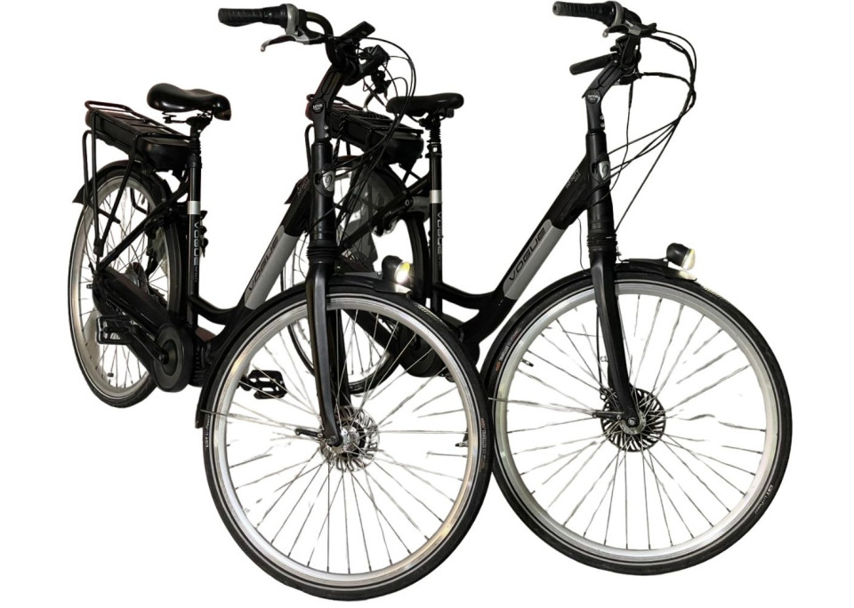 Twee nette Vogue Infinity MDS elektrische fietsen te koop als set. Beide zijn voorzien van een krachtige Bafang M300 middenmotor (65 Nm) en een 468 Wh accu, goed voor een actieradius tot ongeveer 100 km. Ideaal voor wie graag samen fietst met partner, familielid of vriend(in).
