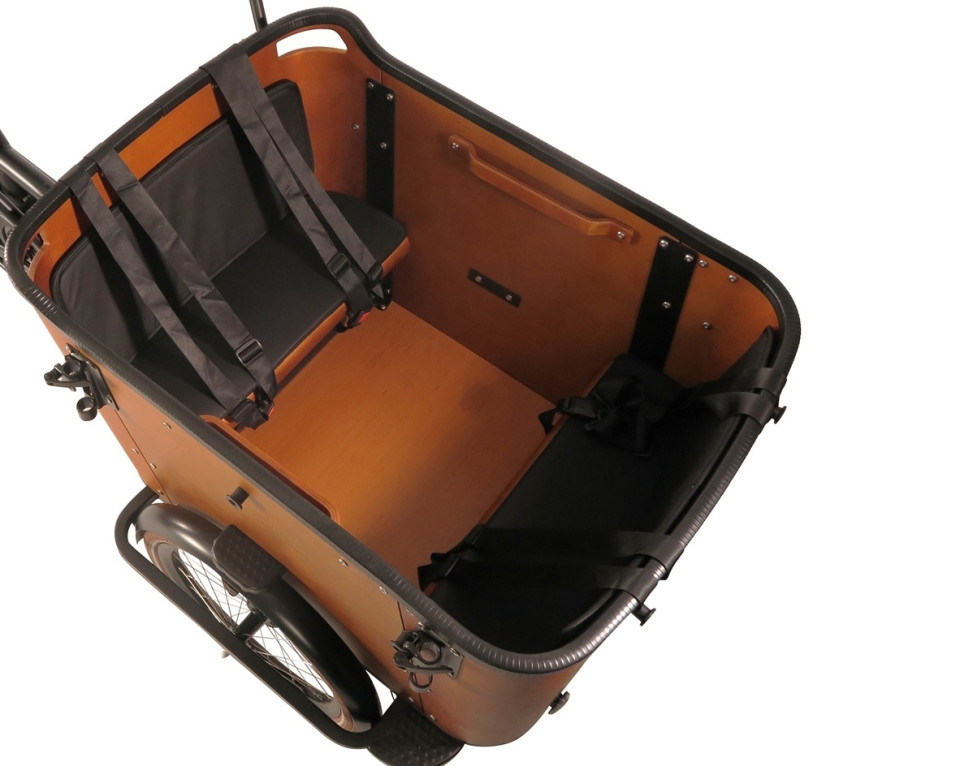 Wilt u de bakfiets op een helling stilzetten of uw kinderen in de bakfiets zetten? Dan kunt u de zilveren knop indrukken zodat de rem erop blijft staan. Hierdoor kan de baktiets niet gaan rollen. Dit is ook ideaal voor als u zelf wilt opstappen.