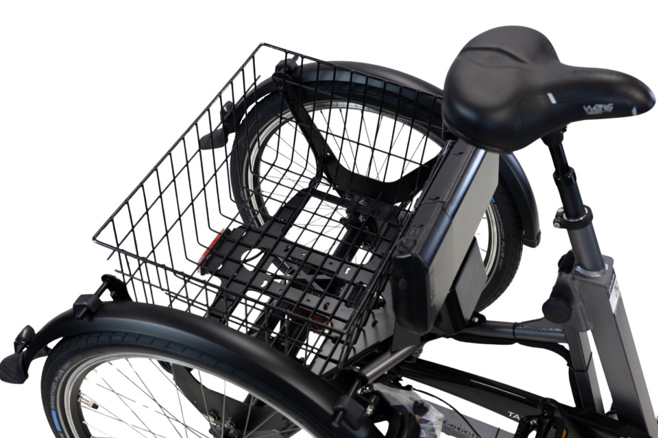 De accu van deze elektrische driewieler is voor uw boodschappenmand geplaatst. Hierdoor kunt u deze zonder te hoeven bukken, gemakkelijk uitnemen om eventueel binnen op te laden of aan de lader te zetten terwijl de accu zich nog in de fiets bevindt. De accu is standaard 324Wh sterk en dat zorgt ervoor dat u tot 40km ver kunt komen op één acculading, en dat is voor de meeste mensen meer dan genoeg. Om verder te komen adviseren wij de 504Wh te selecteren.