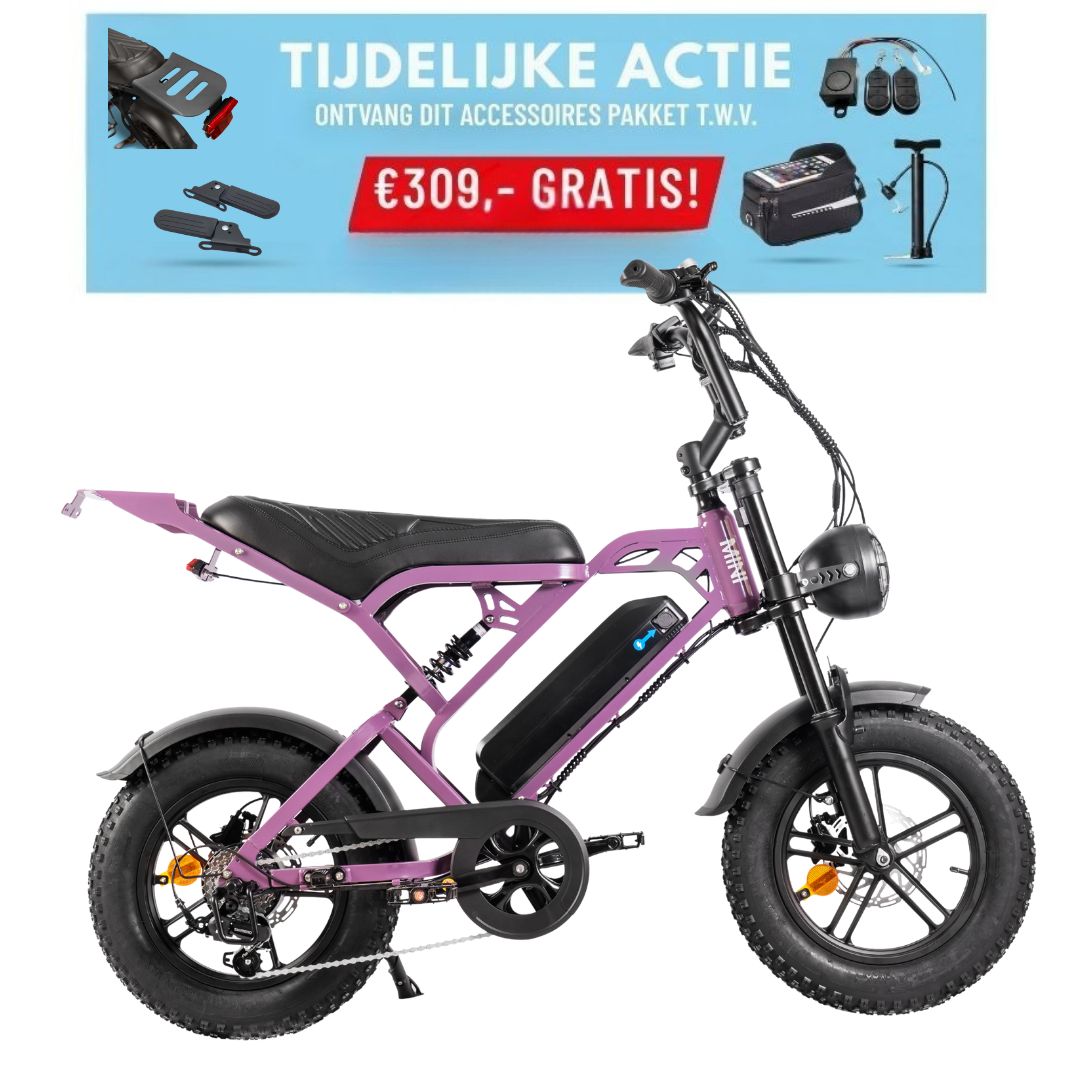 De QMwheel V20Pro Mini elektrische fatbike is een compacte en wendbare e-fatbike met een stoer design en comfortabele rijeigenschappen. Dankzij de brede fatbike banden, elektrische ondersteuning en stevige bouw is deze mini elektrische fatbike ideaal voor dagelijks gebruik in de stad en korte avontuurlijke ritten. De QMwheel V20Pro Mini is perfect voor wie een compacte elektrische fatbike wil kopen met stabiliteit, comfort en gebruiksgemak.