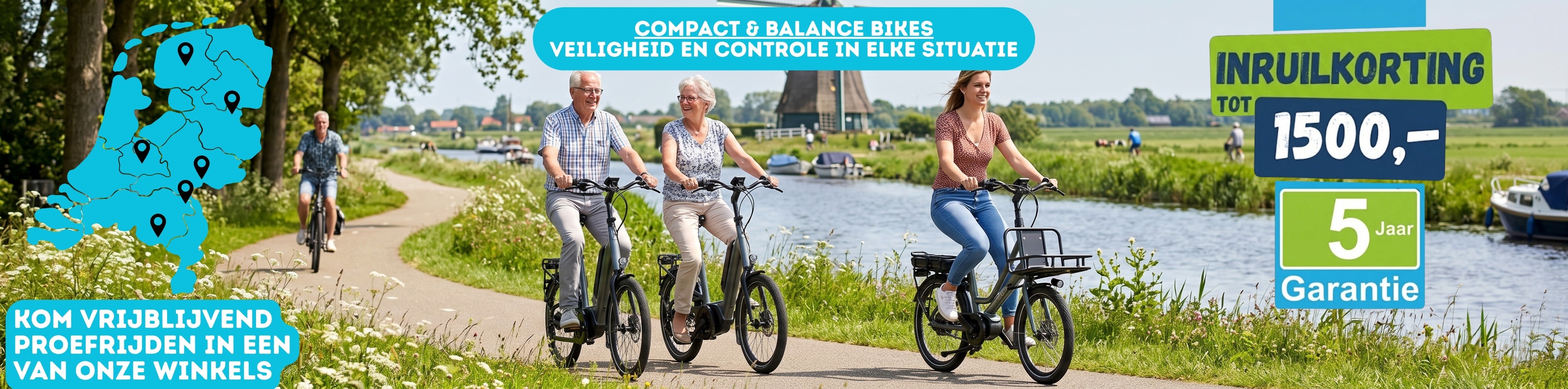 Zoek je een elektrische fiets die maximale stabiliteit combineert met een veilig gevoel? Als erkend specialist bieden wij e-bikes die specifiek zijn ontworpen voor optimale valpreventie en een gemakkelijke opstap. Ontdek onze selectie modellen waarbij je altijd met beide voeten de grond kunt raken, zodat je met volledig zelfvertrouwen elke rit tegemoet gaat. Bekijk op deze pagina ons aanbod aan elektrische compact & balance fietsen en kom ze vrijblijvend uitproberen in een van onze landelijke Experience Centers!
