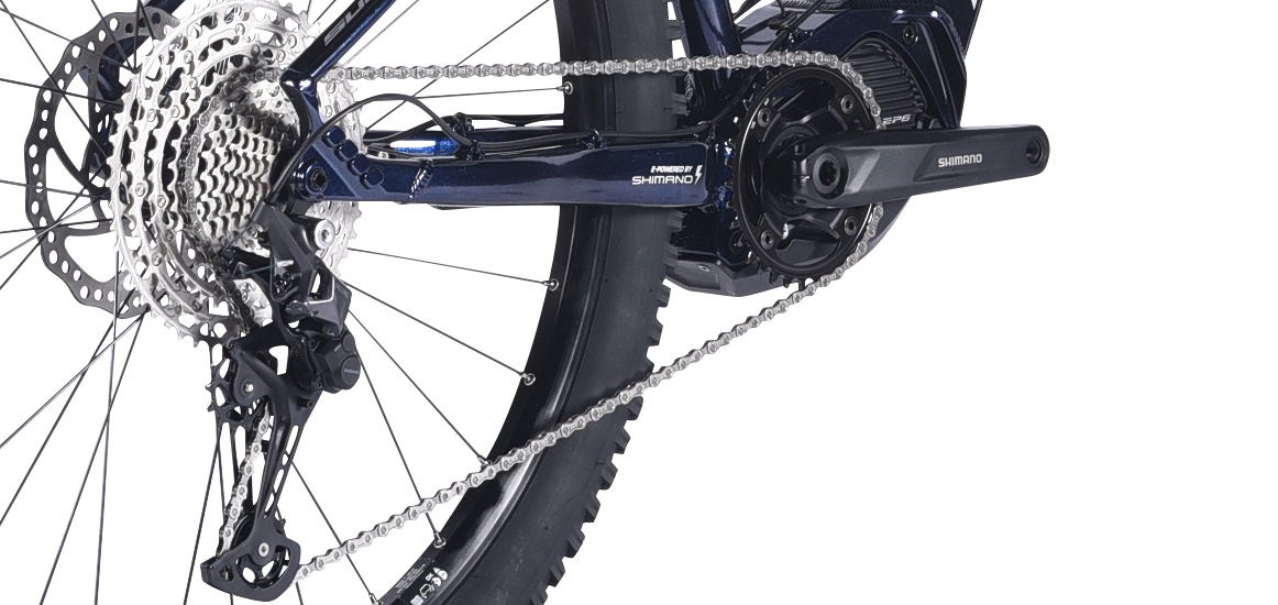 De aandrijving van deze fiets wordt verzorgd door de Shimano Deore. Deze set bestaat uit een 10-51T tandwielset en beschikt over 12 versnellingen welke een groot bereik heeft met een gradatie van 10 tot 51 tanden.. Het crankstel betreft de SHIMANO MT511 32TTS welke perfect samenwerkt met de cassette. Het systeem schakelt in een oogwenk waardoor u de optimale controle heeft over uw trapsnelheid.