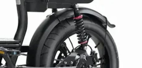 De QMwheel V20 Comfort Fatbike is uitgerust met dubbele achtervering, waardoor u extra comfort en stabiliteit ervaart op oneffen terrein. De achtervering vangt schokken en trillingen efficiënt op, zodat uw rit op asfalt, zand en onverharde paden aanzienlijk comfortabeler wordt. Dankzij deze dubbele vering is de elektrische fatbike met achtervering uitstekend geschikt voor langere ritten en ruwere ondergronden, met meer controle en minder belasting voor de rug en nek.
