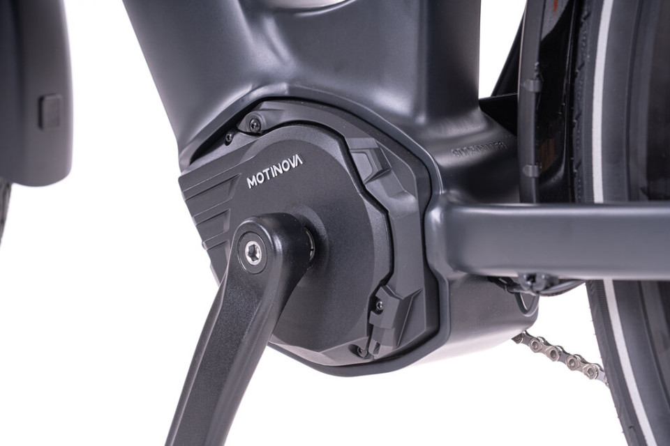 Deze elektrische fiets is uitgevoerd met een krachtige en stille Motinova middenmotor met 65Nm koppel. Deze motor zorgt ervoor dat u met deze e-bike uitstekend uit de voeten kunt in heuvelachtige omgevingen. Bovendien is de middenmotor net als de accu netjes weggewerkt.