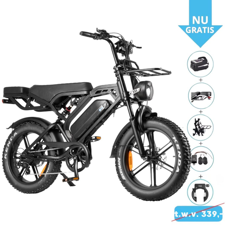 + Uitgevoerd met telefoonhouder, achterdrager met kussens en voetstepjes, voordrager & alarm