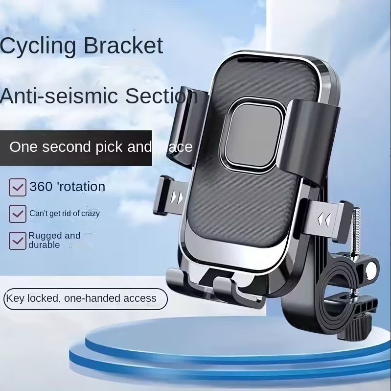 Telefoonhouder voor motorfietsen, ontworpen om schokken op te vangen.