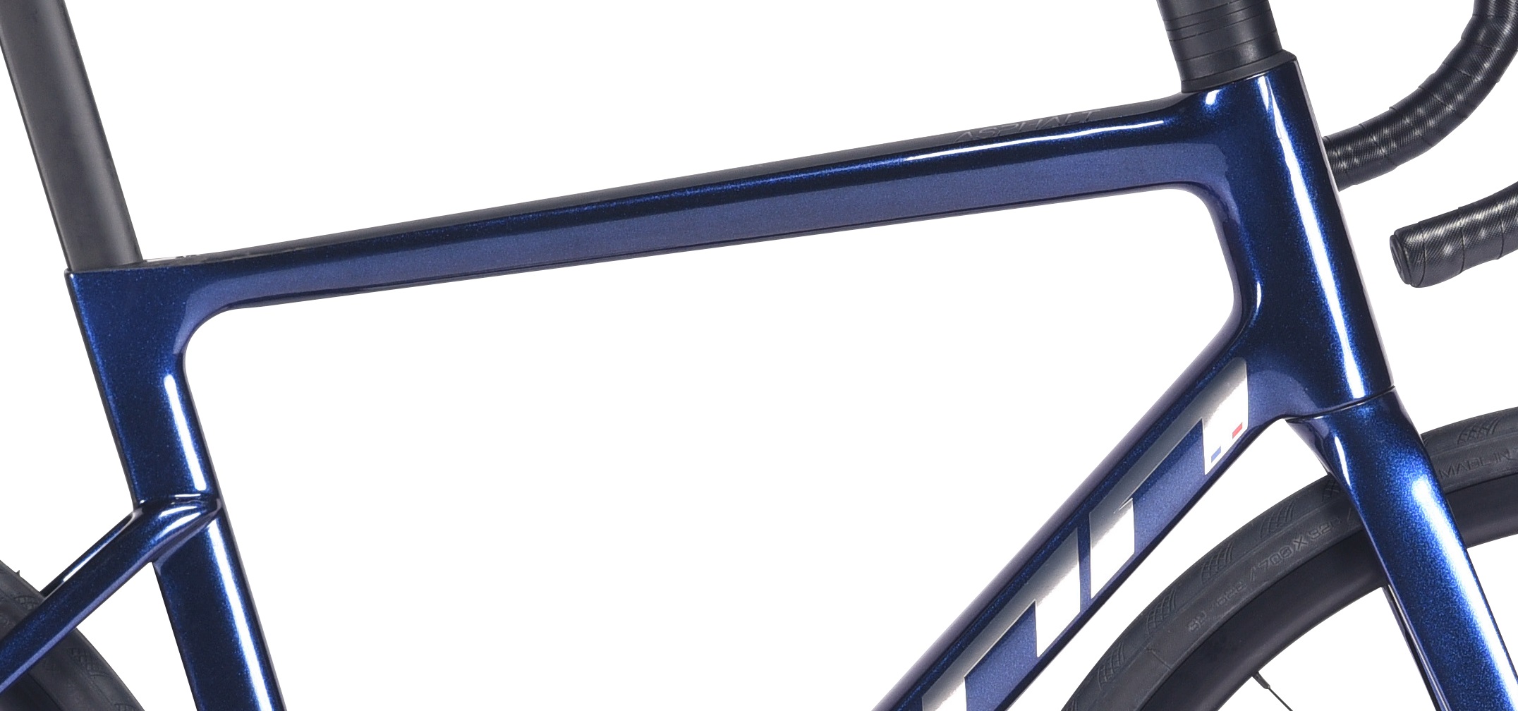 Deze Asphalt S2 is uitgevoerd met een carbon frame en voorvork. Dit zorgt dat de fiets erg stijf is maar natuurlijk ook licht in gewicht. Deze racefiets weegt dan ook maar 8,7kg. De bovenbuis is aflopend om een kleinere driehoek te creëren. Hierdoor is de fiets stijver wat merkbaar is in het stuurgedrag maar ook wordt er minder materiaal gebruikt wat meedeelt aan het lage totaalgewicht van de fiets.